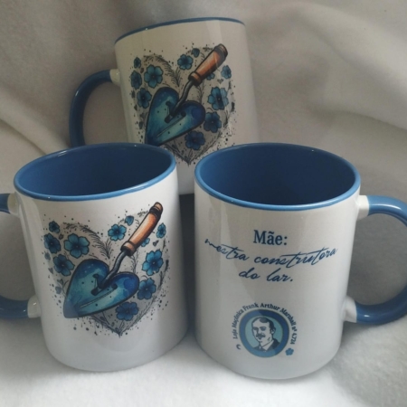 • Caneca de Cerâmica Branca com Interior e Alça Coloridos