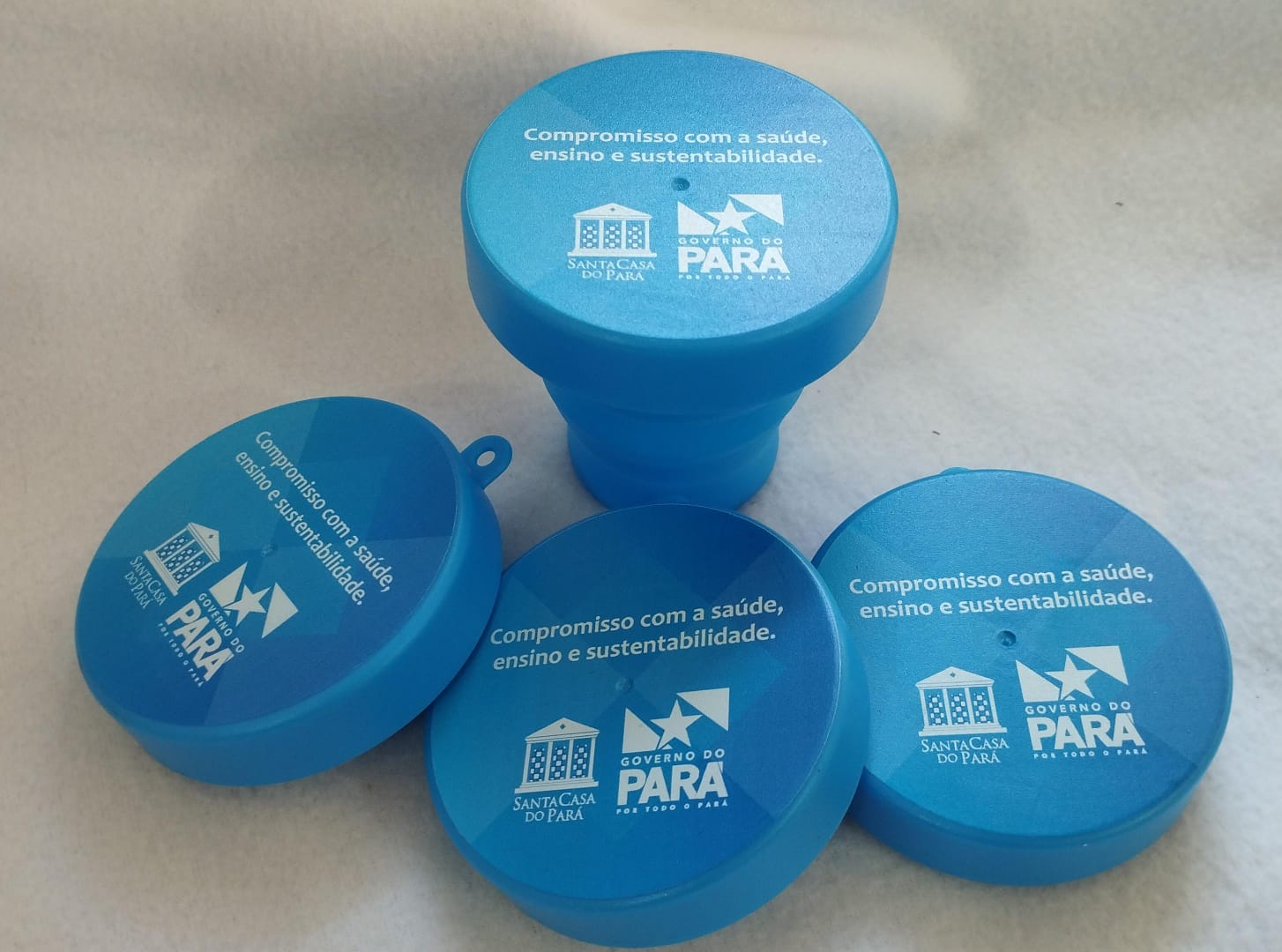 Brinde institucional para campanhas de saúde, ensino e sustentabilidade.