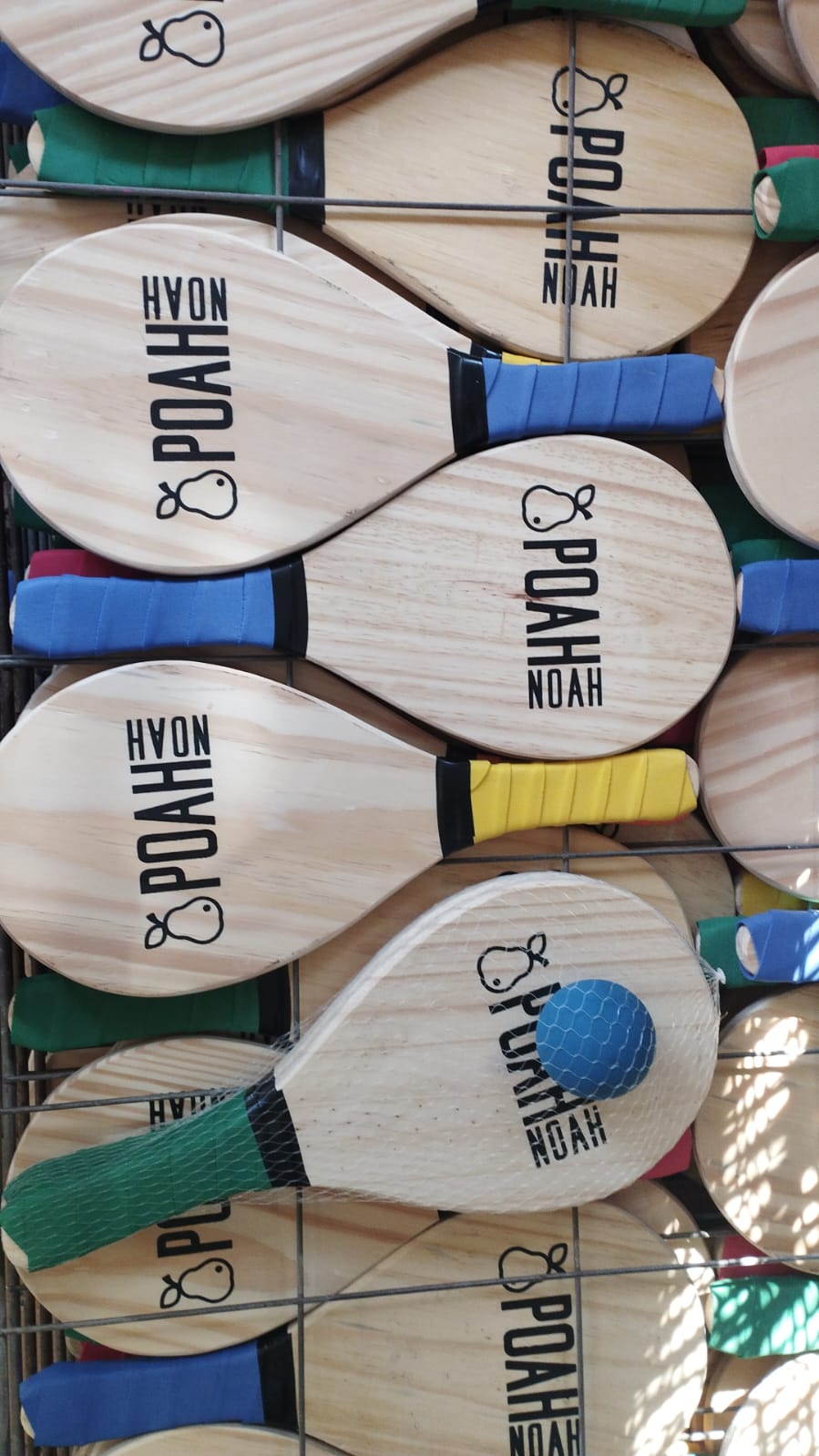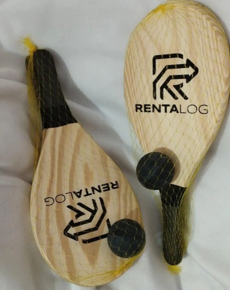 Material Premium: Raquetes confeccionadas em madeira leve e resistente, com acabamento liso que garante durabilidade mesmo em ambientes úmidos.